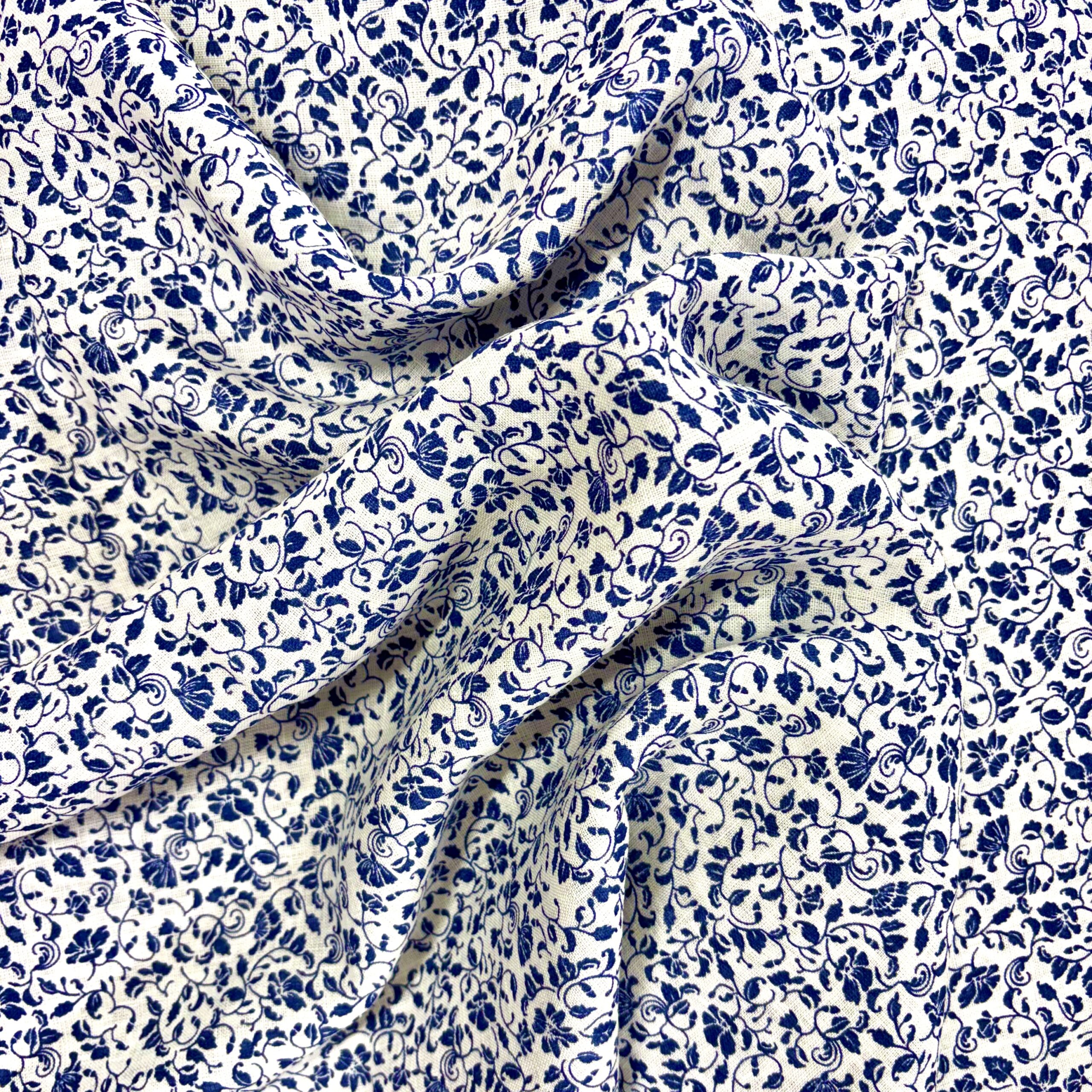 This blue and white floral linen fabric is perfect for dressmaking projects including skirts, shirts and dresses.